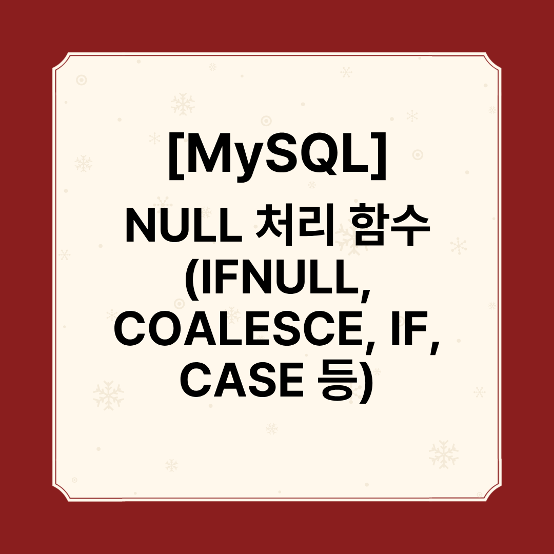 [MySQL] NULL 처리 함수 (ifnull, coalesce, nullif, if, case when ... then... end)